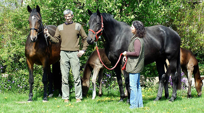 Bernhard und Sabine Langels mit ihren beiden Elitestuten: Gloriette v. Kostolany und Sacre Noir v. Kostolany