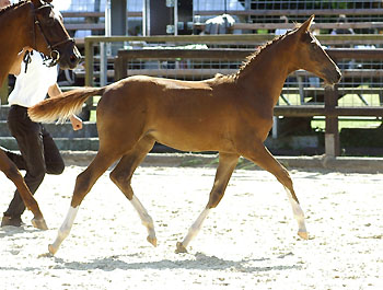 Champion der Hengstfohlen: Brauner Hengst von Shavalou u.d. Pr.St. Gracia Patrizia v. Alter Fritz Züchter u. Besitzer: Bernhard Langels, Schäplitz