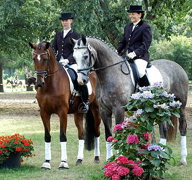 ![]() Zwei Nachkommen von Freudenfest gingen in der Reitpferdeprüfung für 4jährige an den Start; beide qualifizierten sich für das Finale: "Karena" mit Daniela Schunko und "Only You" mit Karin Riethmüller |