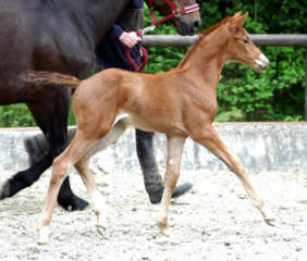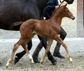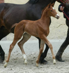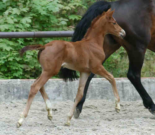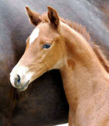 Westfälisches Stutfohlen von Kostolany - Wendehals - Waidmannsdank xx Züchter: Ute Depping, Extertal, Tel. 05751-44362