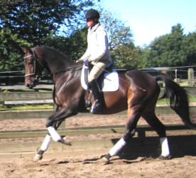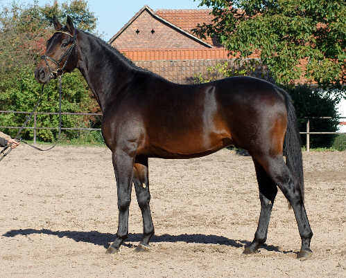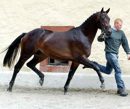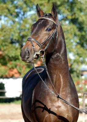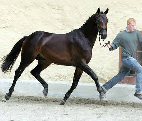 | Dr. Kimble - ein großliniger Kostolany-Sohn - mit drei sehr guten Grundgangarten, viel Schwung, Kadenz und Antritt! Seine Mutter, Donauliebe, hatte bereits Dallmayr v. Münchhausen - der heute in Finnland dressurerfolgreich ist - im Auktionsring. Auch Dell'Fino v. Goldino ist im Dressursport altersgemäß siegreich im Dressursport.  |