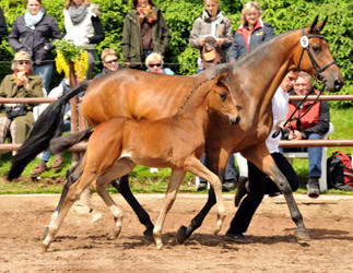 by Grand Corazón out of Pr.u.StPrSt.Schwalbenfeder by Summertime out of Pr.,StPr.u. Elitestute Schwalbenspiel by Exclusiv