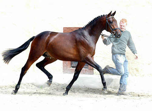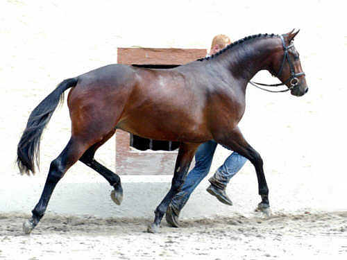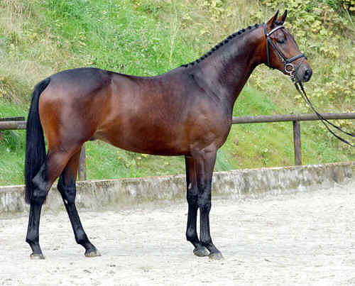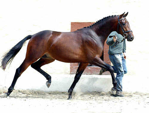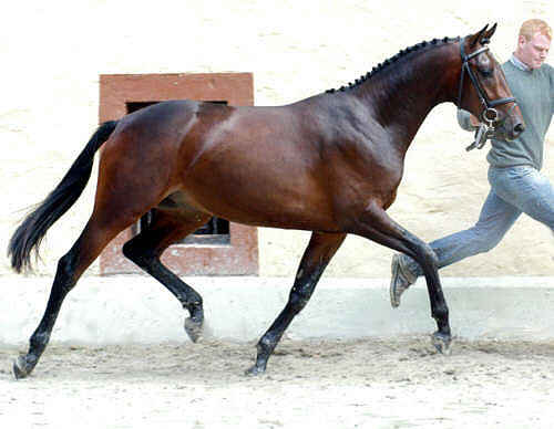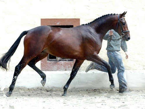 The Thoroughbred dam Unterhaltung, a very wiry mare of clearly defined body texture bred at Graditz, is by Fierant, a renowned state stallion at Moritzburg. The maternal Thoroughbred line came to Graditz 40 years ago from Röttgen stud. It has produced among others Ussuri, a state stallion at Redefin and currently very popular within German breeding. He is a half brother to the granddam Utjatka. |