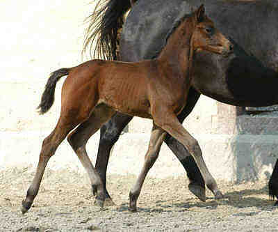 Schwarzbraunes Trakehner Stutfohlen von von Freudenfest u.d. Agatha Christie v. Showmaster u.d. Arancha v. Marduc Züchter: Karl-Heinz Kriwet, Bad Pyrmont