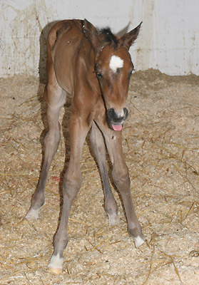noch keine Stunde alt: Hengstfohlen von Freudenfest u.d. La Belle |