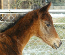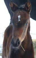 Grebenstein 27. Januar 2006 - in den Vormittagsstunden hat die Prämienstute "Hepburn" v. Kostolany im Gestüt Reinhardswald ein dunkelbraunes Stutfohlen namens HIOLAIR von