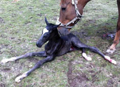 Calberlah - 28. April 2012 - Elke Giera meldete und die Geburt eines Rappstutfohlens von Saint Cyr u.d. Alsterfee v. Induc - Seeadler. Ein typvolles, nobles Fohlen. |