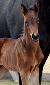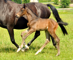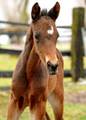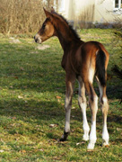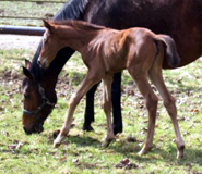 braunes, sehr typvolles und hochbeiniges Hengstfohlen von unserem Kostolany-Sohn Saint Cyr zur Welt gekommen. Mutter des
