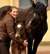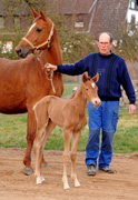 Saint Cyr und der Prämienstute Greta Garbo v. Alter Fritz. Mutter und Tochter sind wohlauf.