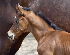 8. April 2018 - Aus den neuen Bundesländern erreichte uns die freudige Nachricht der Geburt eines sehr typvollen dunkelbraunen Stutfohlens von Saint Cyr u.d. Ambra v. Vivus. Wir gratulieren Katja Brune und Familie ganz herzlich und wünschen alles Gute für die Aufzucht! | ![]() |