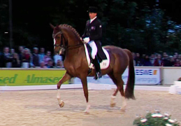 heutigen Grand Prix Kür den vierten Rang. Am Freitag erritten sich die beiden den hervorragenden zweiten Platz im Grand Prix de Dressage ! Himmelfahrt startete das Paar in der Dressur Kl. S*** Intermediaire II und belegte dort den vierten Platz. |