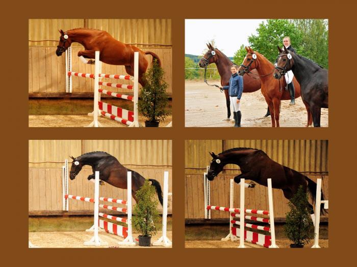 erhielt beim Freispringen für die Manier eine 9,0 und für das Vermögen eine 9,5 - Gesamtnote 7,87! Unsere 5jährige Schwalbenland v. Touch my Heart siegte bei den 4jährigen u. älteren Stuten mit der WN 8,06 (Freispringen Manier 8,0/Vermögen 9,0). Alle drei Stuten sin nunmehr Prämienstuten des Trakehner Verbandes und dürfen jetzt in die verdiente Fohlenpause gehen! Herzlichen Glückwunsch unseren beiden Reiterinnen Jessica und Pia sowie dem ganzen Team - ihr habt das super gemacht - vielen Dank! ![]() | ![]() |