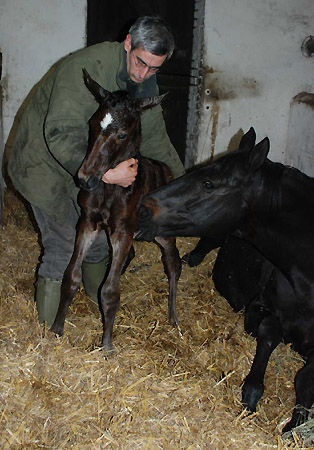 - mit seiner Leihmutter Gwendolyn v. Maestro und deren Fohlen von Exclusiv ![]()