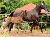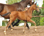 Die Siegerschärpe bei den Hengstfohlen sicherte sich ein Sohn des S-Dressur erfolgreichen gestütseigenen Vererbers High Motion aus der Prämien- u. Staatsprämienstute Farah v. Montafon aus der Zucht von Katharina Dierks und nun im gemeinsamen Besitz von Katharina und ihrer Mutter, Renate Dierks.