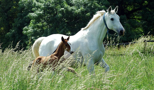 ![]() Die 21-jährige Thirza v. Karon mit ihrem 9 Tage alten Sohn von Axis |
